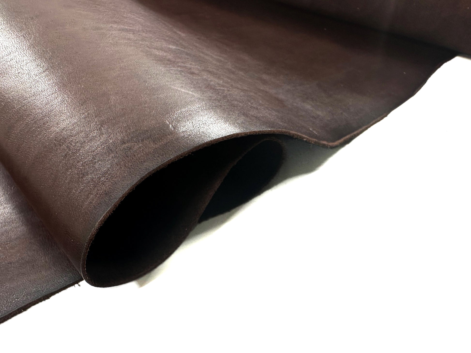 使い易さにこだわり、染料仕上げを施して程よいツヤと透明感のある表情を持たせた、ハシモト産業の定番ホースレザー。