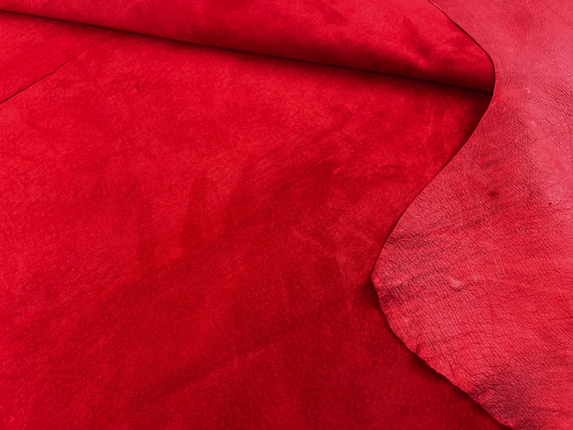 銀面は傷が多い為、床面(スエード面)を商品として販売しておりますが、用途に応じて銀面を使われる方もいらっしゃいます。