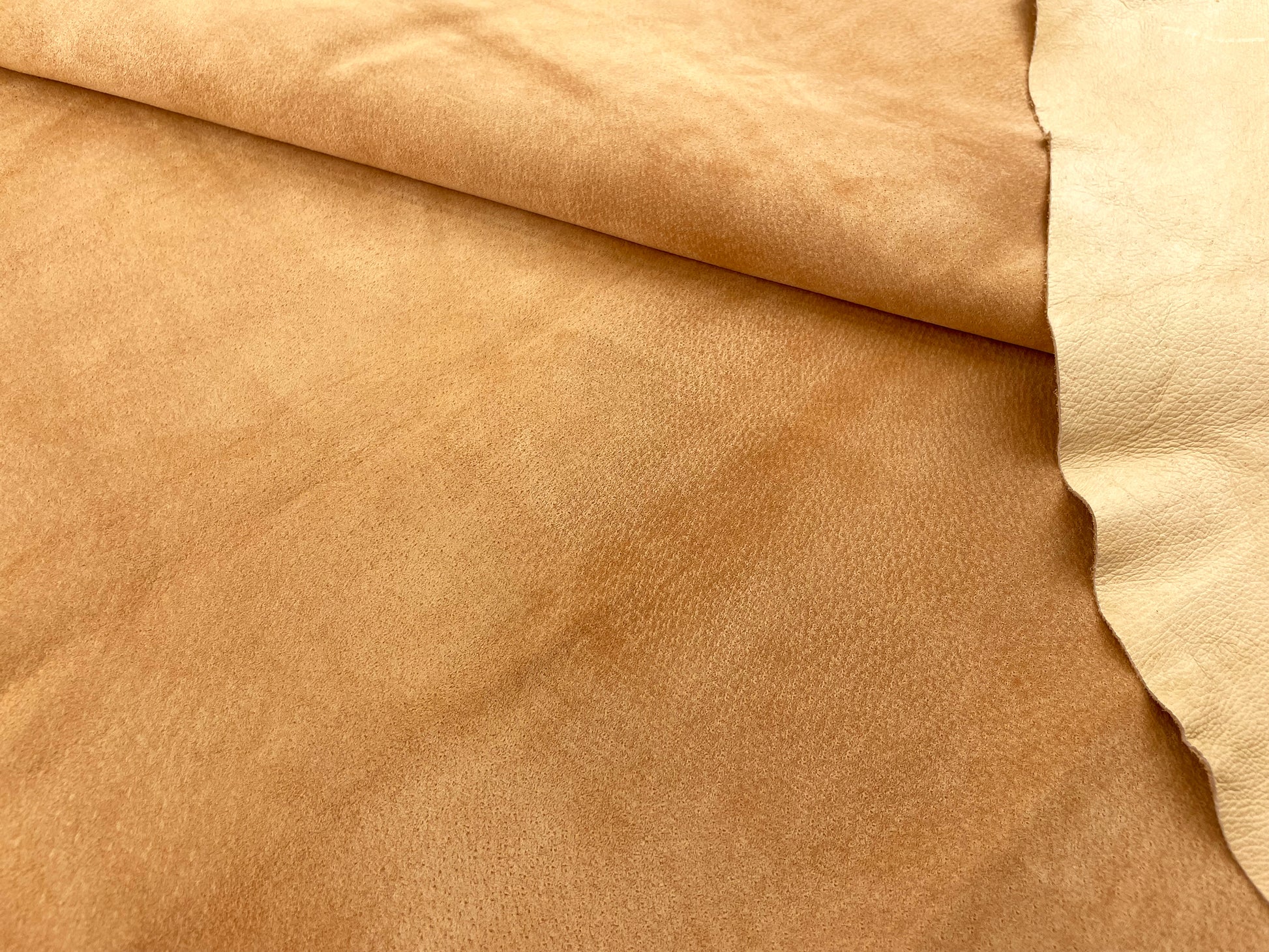 銀面は傷が多い為、床面(スエード面)を商品として販売しておりますが、用途に応じて銀面を使われる方もいらっしゃいます。