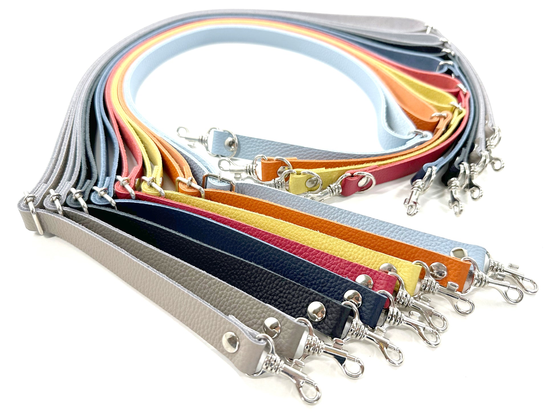 長さ調整可能な本革ショルダー紐。